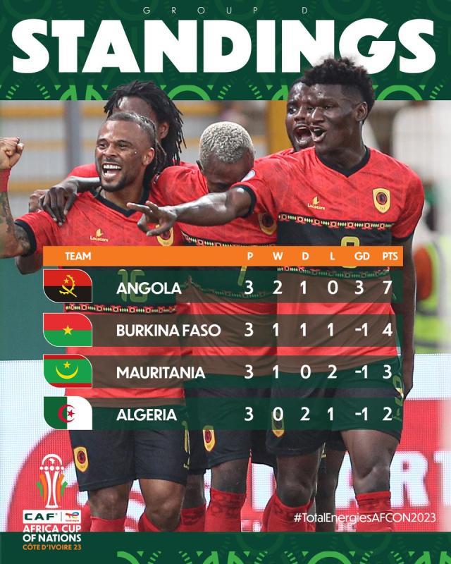 D组则迎来超级大冷门,毛里塔尼亚1比0击败阿尔及利亚,从0分到3分,力压对手以小组第3名晋级。让人惊讶的是,这是毛里塔尼亚队史首次在非洲杯正赛赢球,而且是在一场小组生死战中击败直接竞争对手——两届非洲杯冠军得主阿尔及利亚!阿尔及利亚阵中同样不乏效力欧洲五大联赛的名将,最有名气的无疑是现已效力沙特联赛的队长马赫雷斯。